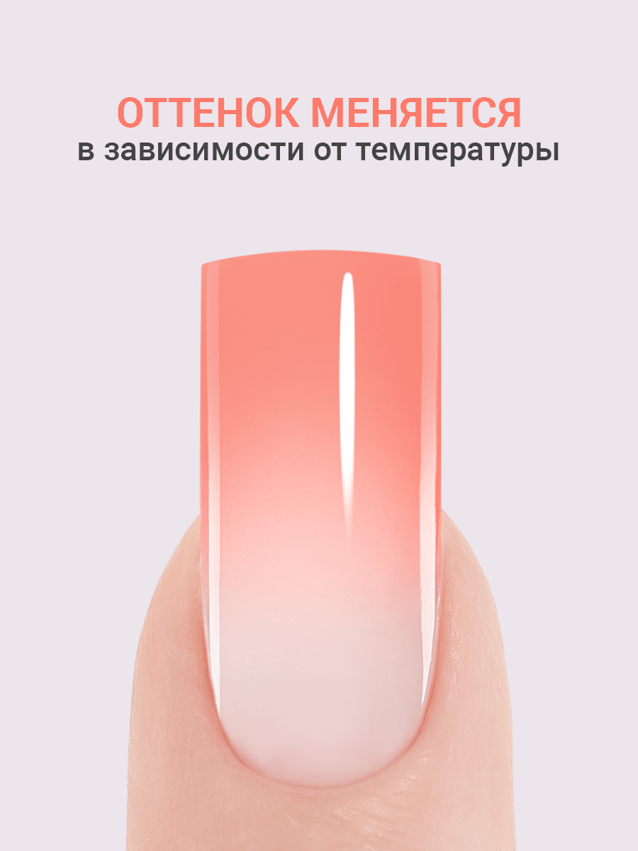 Откройте для себя термо гель для ногтей от Фокси Эксперт! Гель с термоэффектом, реагирует изменением оттенка цвета на изменение температуры вашего тела или окружающей среды, создавая эффект градиента и добавляя вашему образу особую изюминку. Самовыравнивающийся BUILDER GEL обладает средней вязкостью, что делает его легким в нанесении и распределении по ноготкам. Прекрасно поджимается в арку на 10-15 секунде. Трехфазный гель камуфляж незаметен при отрастании и эффективно скрывает дефекты ногтевой пластины, придавая ей здоровый и естественный вид. Эластичный в тонком слое и жесткий в выравнивающем (не менее 1,5 мм), идеально подходит для различных техник: • Техника "без опила" • Донаращивание по воздуху • Наращивание любой длины на верхние и нижние шаблоны • Поднятие "клювов" • Моделирование архитектуры ногтевой пластины • Создание креативных форм, включая когти • Выкладной френч • Укрепление и ремонт Наибольшая смена цвета наблюдается на свободном крае, так как температура там всегда ниже – кончик ногтя не соприкасается с кожей. Важно перед применением тщательно перемешать гель. Рекомендуется наносить на подложку и базы, а готовый маникюр перекрывать топом для защиты и блеска. Легко снимается спиливанием фрезой или пилкой.