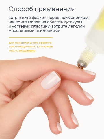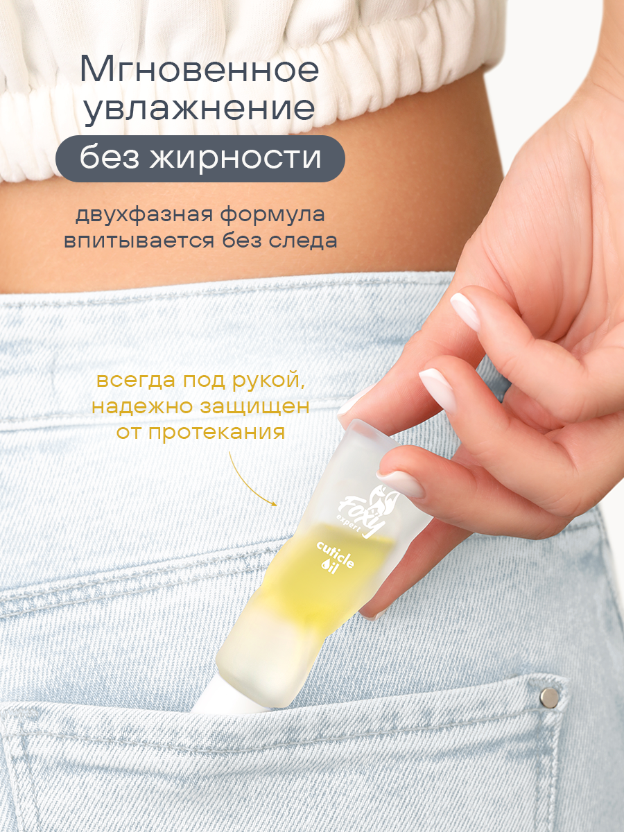 Масло для кутикулы - это идеальное средство для ухода за вашими ногтями и кутикулой. Обеспечивает не только максимальное увлажнение и питание, но и продлевает срок носки маникюра. Создает защитный барьер на поверхности кожи, сохраняя ее увлажненной и защищенной от негативных внешних воздействий. Сочетание ценных ингредиентов придают ему эффективность и ухаживающие свойства. Приятный аромат позволяет насладиться профессиональным уходом за руками, подарив ощущение комфорта и релаксации. Вы можете брать его с собой везде – благодаря удобному формату он легко помещается в сумочке или косметичке.