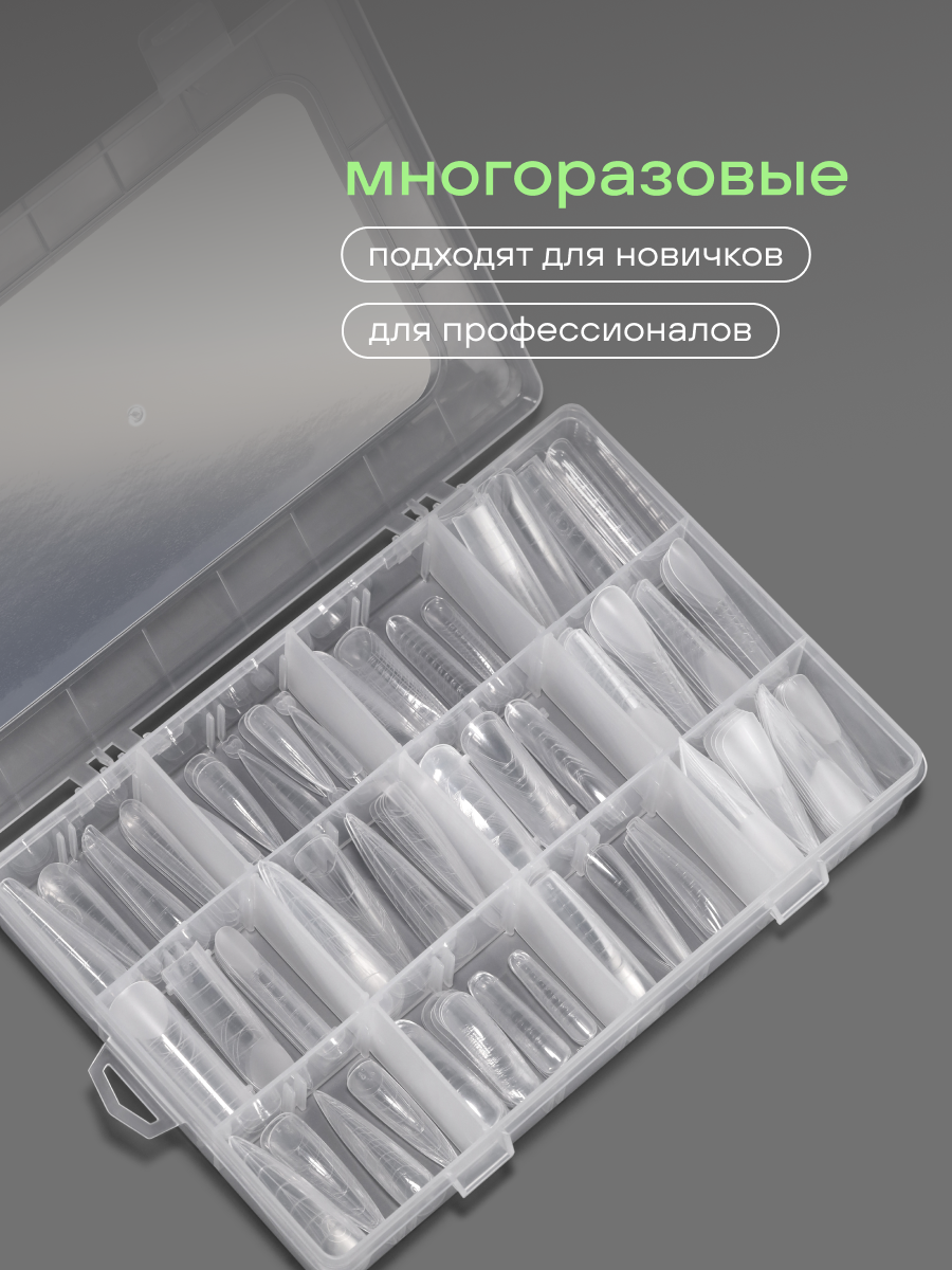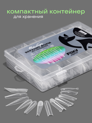 Профессиональный набор верхних формы от FOXY EXPERT — это незаменимый инструмент для мастеров, которые ценят свое время. Используя верхние формы для наращивания ногтей, можно выровнять любую ногтевую пластину и добиться красивой эстетичной архитектуры ногтей. Набор № 1 включает в себя 12 видов верхних 12 размеров 288 штук: -Квадрат -Арочный квадрат -Универсальные зауженные -Эдж -Пайп для френча -Арочный миндаль -Универсальные ультра -Универсальные размер М -Универсальные размер L -Стилет -Стилет размер M -Классический миндаль Верхние формы для ногтей изготовленные из высококачественного износостойкого пластика прозрачные, эластичные и тонкие прослужат вам долгое время. В отличии от типс, формы Фокси Эксперт являются многоразовыми, что существенно экономит бюджет! Четкая и удобная трафаретная разметка помогает правильно выставить форму по вертикальной оси пальца и точно скорректировать длину и форму ногтей. Есть ориентиры для силиконовых трафаретов молдов под френч. Ультратонкий пластик формы обеспечивает плотное прилегание к ногтевой пластине, что позволяет создать оптимальную толщину нарощенного свободного края ногтя.