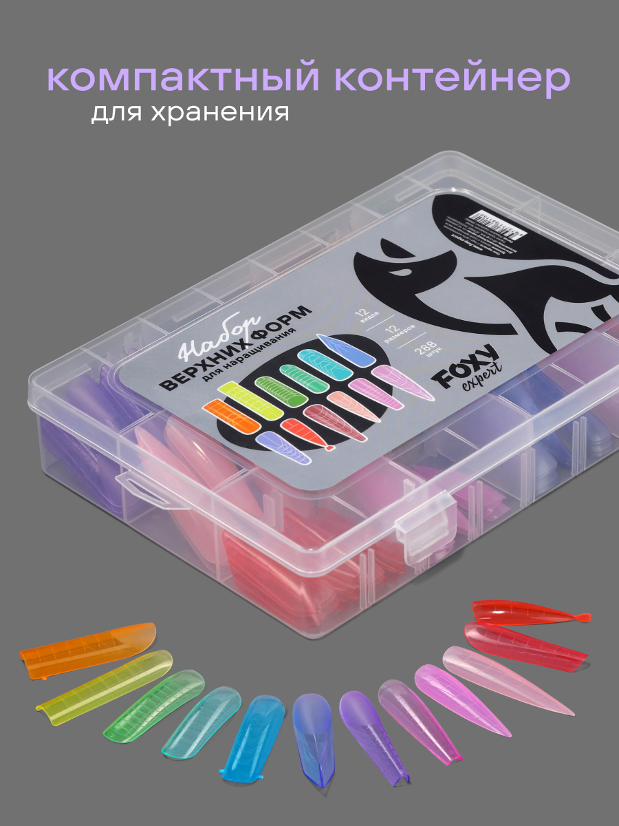 Набор верхних форм для наращивания №2, цветные (12 видов 12 размеров 288 шт)