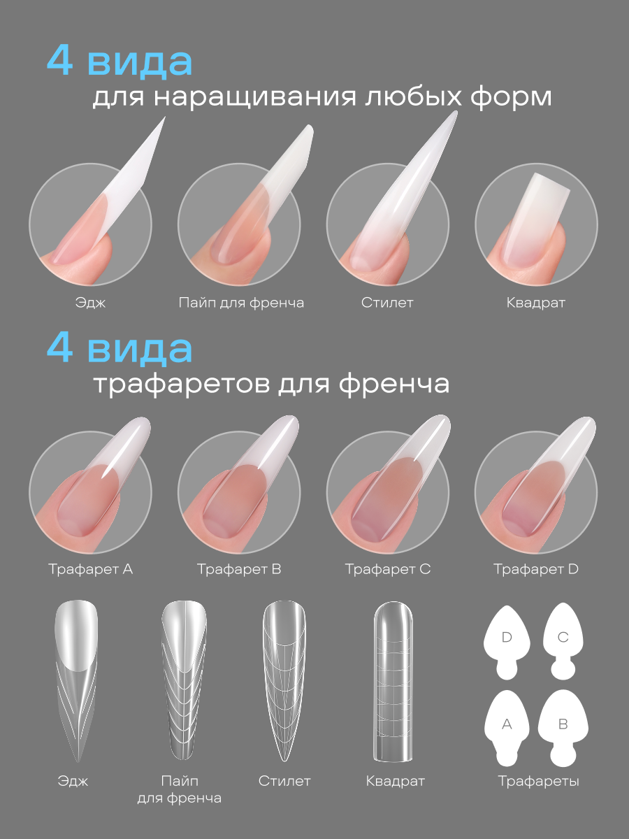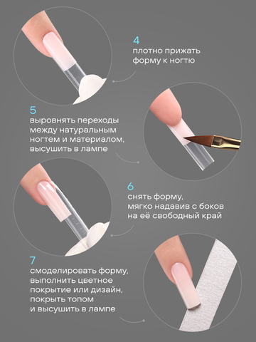 Верхние формы для наращивания подходят для работы с любыми видами гелей акригелей и полигелей.