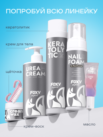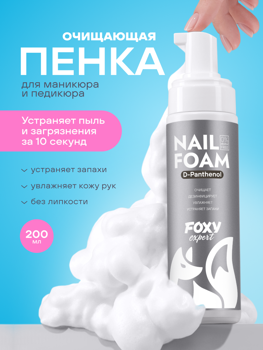 Представляем вам Очищающую пенку для маникюра и педикюра от FOXY EXPERT – универсальное и эффективное средство для педикюра и маникюра, разработанное для достижения идеальной чистоты и ухода за кожей. Это не просто пенка для ногтей, а профессиональный продукт из категории косметика для ногтей / для рук и ног, который обеспечивает комплексную подготовку к маникюру / педикюру. Ключевые особенности и преимущества: • Идеальное очищение: Наша пенка для очищения от пыли (актуально после опила) мгновенно и без остатка удаляет мелкую пыль и загрязнения, выступая как эффективное средство для удаления опила. • Уходовый эффект: Формула обеспечивает увлажнение кутикулы и кожи, что делает ее идеальным решением для ухода за сухой кожей стоп и рук. При регулярном использовании может наблюдаться легкий пенка-кератолитик эффект, размягчающий огрубевшую кожу. • Универсальное применение: Подходит для домашнего и профессионального использования, подтверждая свой статус как профессиональная косметика для маникюра. • Экономичный формат: Большой объем 200 мл гарантирует длительное использование.