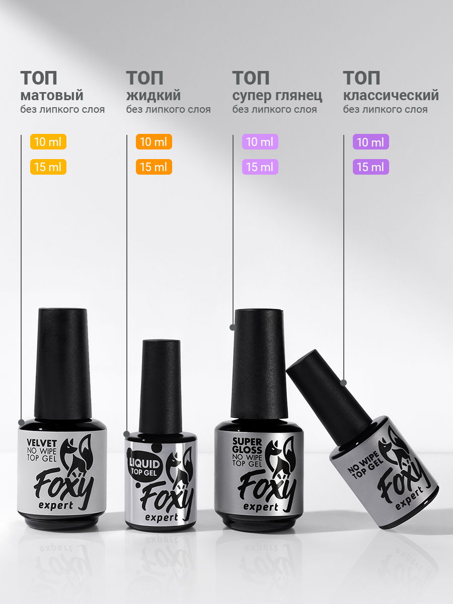 Матовый сатиновый бархатный топ для ногтей гель лака от Фокси Эксперт прозрачный бесцветный финиш для ногтей. Густой, без липкого слоя, самовыравнивается, не желтеет на белых оттенках, не царапается, не затирается. Укрепляющий гель защищает маникюрное покрытие - лак, гель-лак, базу, акрил от царапин и сколов. Средняя по плотности консистенция гелевого закрепителя - универсальный вариант, который не растекается. Топ вельвет служит для закрепления маникюра, создания матового бархатного покрытия, для дизайна и декора. Супер финиш с эффектом сатина можно использовать дома и в салоне. Наносить тонким слоем. Покупайте завершающее верхнее покрытие в паре с базовым гелем для маникюра. Способ применения: 1. подготовить ногтевую пластину к покрытию; 2. нанести тонким слоем праймер, дать подсохнуть;3. сделать выравнивание базой, просушить в лампе;4. нанести цвет, просушить в лампе; Обезжирить поверхность, снять липкий слой 5. покрыть топом одним тонким слоем, просушить в лампе.