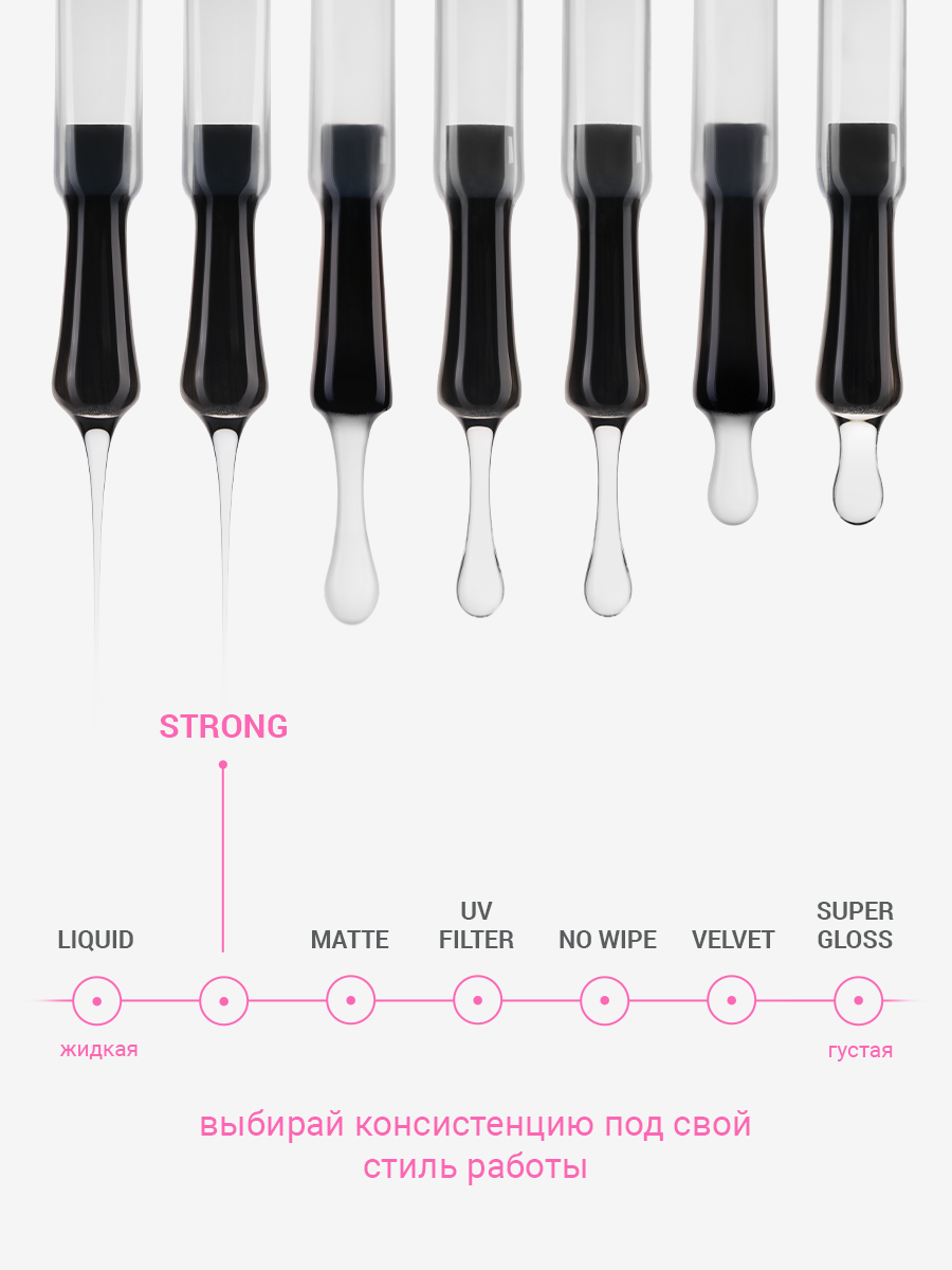 Топ для ногтей без липкого слоя твёрдый (No wipe top gel STRONG), 10 ml