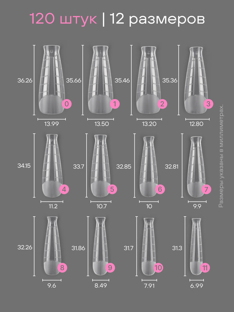 Профессиональные верхние формы от FOXY EXPERT — это незаменимый инструмент для мастеров, которые ценят свое время. Используя верхние формы для наращивания ногтей, можно выровнять любую ногтевую пластину и добиться красивой эстетичной архитектуры ногтей. В линейке нашего бренда представлен широкий выбор форм, выбирайте подходящие формы для ваших ногтей и задач. Верхние формы для наращивания ногтей Овальный Миндаль. Изготовленные из высококачественного износостойкого пластика прозрачные, эластичные и тонкие прослужат вам долгое время. В отличии от типс, формы Фокси Эксперт являются многоразовыми, что существенно экономит бюджет! Верхние формы Овальный Миндаль подходят для обычных плоских ногтей со средней аркой, не подходят арочным ногтям. Четкая и удобная трафаретная разметка помогает правильно выставить форму по вертикальной оси пальца и точно скорректировать длину и форму ногтей. Есть ориентиры для силиконовых трафаретов молдов под френч. Ультратонкий пластик формы обеспечивает плотное прилегание к ногтевой пластине, что позволяет создать оптимальную толщину нарощенного свободного края ногтя. Расширенный размерный ряд позволяет подобрать формы под любую ногтевую пластину — от самых узких до широких ногтей. Мягкий пластик у кутикулы и твердый у конца позволяют работать в технике отпечатка на готовность, ногти почти не требуют опила после наращивания только по боковым параллелям. Верхние формы для наращивания подходят для работы с любыми видами гелей акригелей и полигелей.