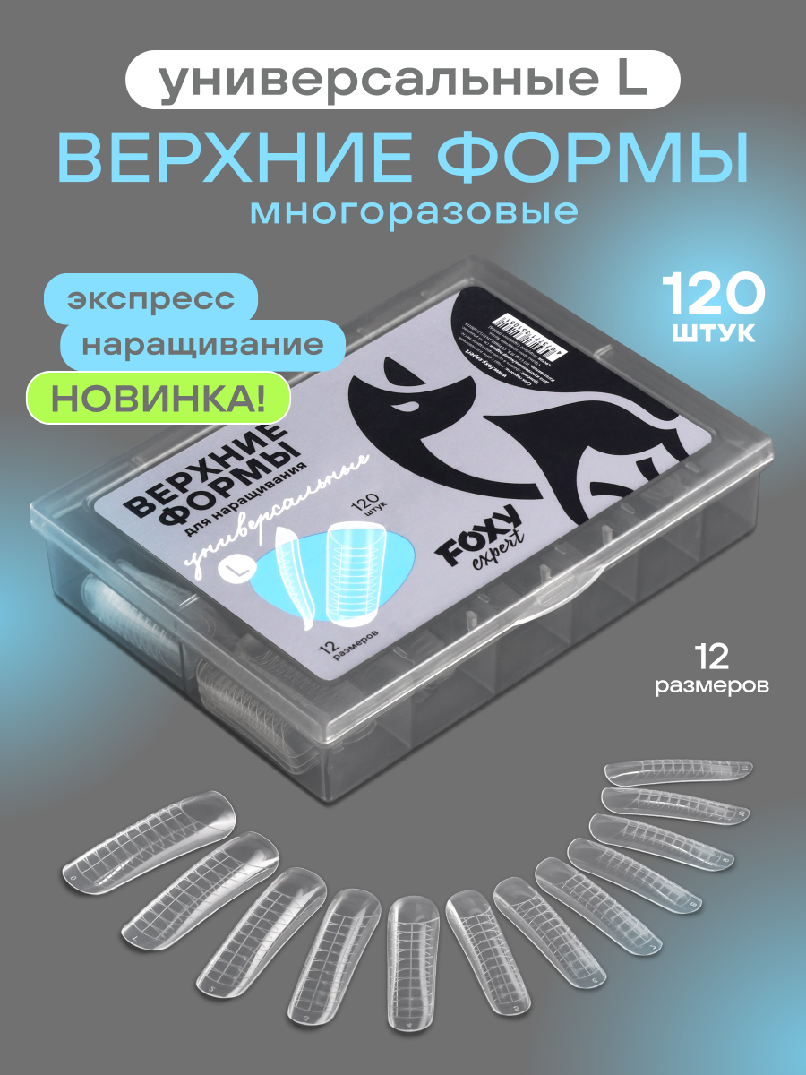 Профессиональные верхние формы от FOXY EXPERT Универсальные размер L— это незаменимый инструмент для мастеров, которые ценят свое время. Используя верхние формы для наращивания ногтей, можно выровнять любую ногтевую пластину и добиться красивой эстетичной архитектуры ногтей. В линейке нашего бренда представлен широкий выбор форм, выбирайте подходящие формы для ваших ногтей и задач. Универсальные верхние формы для наращивания ногтей изготовленные из высококачественного износостойкого пластика прозрачные, эластичные и тонкие прослужат вам долгое время. В отличии от типс, формы Фокси Эксперт являются многоразовыми, что существенно экономит бюджет! Верхние формы Универсальные размер L подходят для плоских и клюющих ногтей, не подходят для арочных и растущих вверх ногтей. Четкая и удобная трафаретная разметка помогает правильно выставить форму по вертикальной оси пальца и точно скорректировать длину и форму ногтей. Есть ориентиры для силиконовых трафаретов молдов под френч. Ультратонкий пластик формы обеспечивает плотное прилегание к ногтевой пластине, что позволяет создать оптимальную толщину нарощенного свободного края ногтя. Расширенный размерный ряд позволяет подобрать формы под любую ногтевую пластину — от самых узких до широких ногтей. Мягкий пластик у кутикулы и твердый у конца позволяют работать в технике отпечатка на готовность, ногти почти не требуют опила после наращивания только по боковым параллелям. Верхние формы для наращивания подходят для работы с любыми видами гелей акригелей и полигелей.