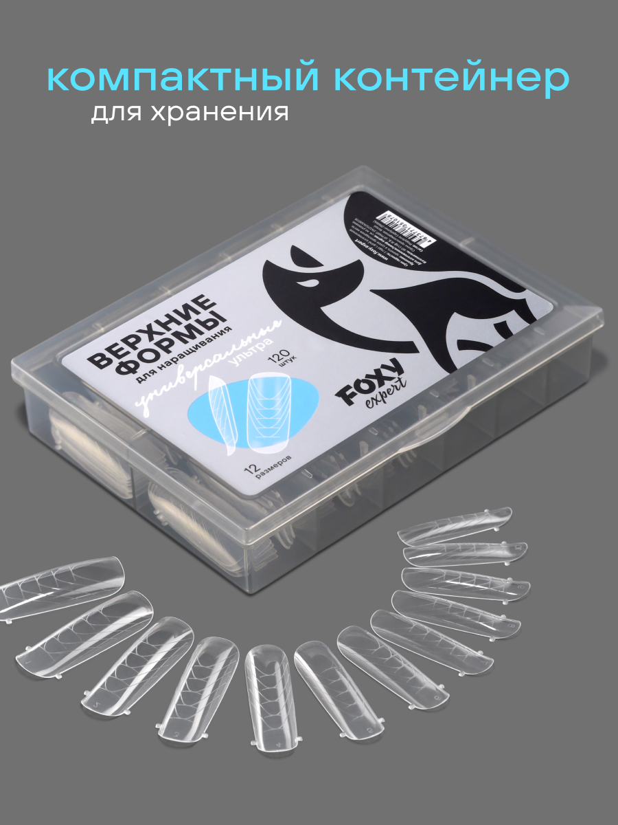 Профессиональные верхние формы от FOXY EXPERT — это незаменимый инструмент для мастеров, которые ценят свое время. Используя верхние формы для наращивания ногтей, можно выровнять любую ногтевую пластину и добиться красивой эстетичной архитектуры ногтей. В линейке нашего бренда представлен широкий выбор форм, выбирайте подходящие формы для ваших ногтей и задач. Универсальные верхние формы ультра для ногтей изготовленные из высококачественного износостойкого пластика прозрачные, эластичные и тонкие прослужат вам долгое время. В отличии от типс, формы Фокси Эксперт являются многоразовыми, что существенно экономит бюджет! Четкая и удобная трафаретная разметка помогает правильно выставить форму по вертикальной оси пальца и точно скорректировать длину и форму ногтей. Есть ориентиры для силиконовых трафаретов молдов под френч. Ультратонкий пластик формы обеспечивает плотное прилегание к ногтевой пластине, что позволяет создать оптимальную толщину нарощенного свободного края ногтя. Расширенный размерный ряд позволяет подобрать формы под любую ногтевую пластину — от самых узких до широких ногтей. Мягкий пластик у кутикулы и твердый у конца позволяют работать в технике отпечатка на готовность, ногти почти не требуют опила после наращивания только по боковым параллелям. Верхние формы для наращивания подходят для работы с любыми видами гелей акригелей и полигелей.